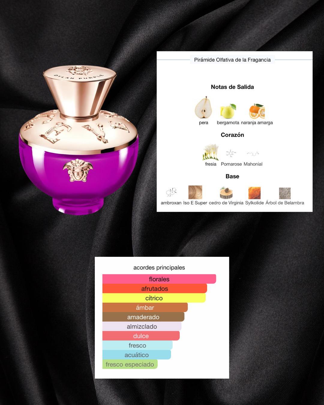 Versace Pour Femme Dylan Purple de Versace es una fragancia de la familia olfativa Floral Frutal para Mujeres. Versace Pour Femme Dylan Purple se lanzó en 2022. La Nariz detrás de esta fragrancia es Christophe Raynaud. Las Notas de Salida son pera, bergamota y naranja amarga; las Notas de Corazón son fresia, Pomarose y Mahonial; las Notas de Fondo son ambroxan, Iso E Super, cedro de Virginia, Sylkolide y Árbol de Belambra.
